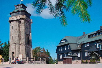 Mit 1.018 m ist der Auersberg, nach Fichtelberg und Brocken, dritthöchster Berg Ostdeutschlands. Als beliebtes Jagdrevier der sächsischen Kurfürsten erhielt er bereits im 17. Jahrhundert einen ersten hölzernen Turm. Heute bietet ein steinerner Aussichtsturm von 1860 eine herrliche Rundsicht bis ins Vogtland und das böhmische Erzgebirge. Weiterhin laden der historische Berggasthof, ein Kinderspielplatz, der Bergwaldgarten und ein kleiner Bergkräutergarten zum Verweilen auf dem beliebten Wanderziel ein.