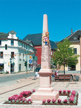 Seit dem 1. Juli 2005 steht auf dem Postplatz die originalgetreue Nachbildung der kursächsischen Postdistanzsäule aus dem Jahre 1727. In Postkutschen fuhren früher Reisende auf holprigen Wegen durch Sachsen. Kartenwesen, Landvermessung und Straßenbau steckten noch in den Kinderschuhen. Doch der Aufschwung in den sächsischen Manufakturen und Bergwerken verlangte nach neuen Verkehrswegen.